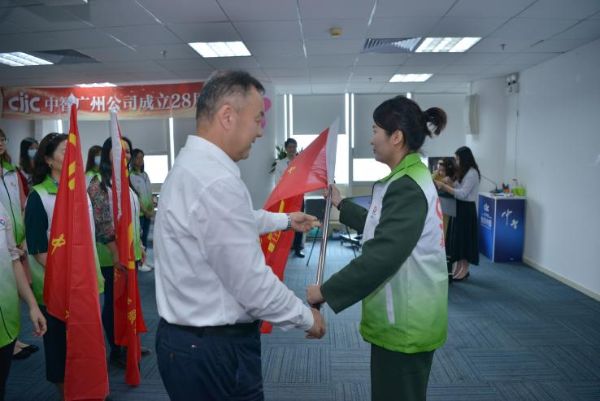 活动当日,籍着中国共产党成立100周年之际,为大力弘扬“奉献、友爱、互助、进步”的志愿精神,进一步践行“我为群众办实事”实践活动的宗旨,切实发挥志愿服务在中智发展中的积极作用,以优异成绩庆祝中国共产党百年华诞。并由中智广州公司党委书记、总经理柴永强先生为广州公司志愿服务队及各分队授旗。