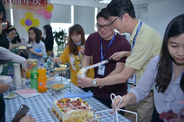随后,由中智广州公司总经理柴永强先生进行切蛋糕仪式,把整个司庆活动推向高潮。员工们在一片欢声笑语中举杯庆祝广州公司周年庆快乐。享受美食的同事,我们还准备了精彩的游戏环节“梦回1993”的复古造型大赛、经典金曲猜猜猜、猜猜我是谁等系列互动游戏环节,员工们纷纷积极参与。特别是复古造型大赛中,大家为此精心打扮,一起“梦回1993”。